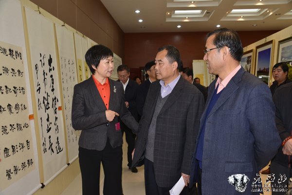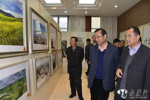 连辑部长参观甘肃省文联双联富民书画摄影作品。 贾笑云 摄