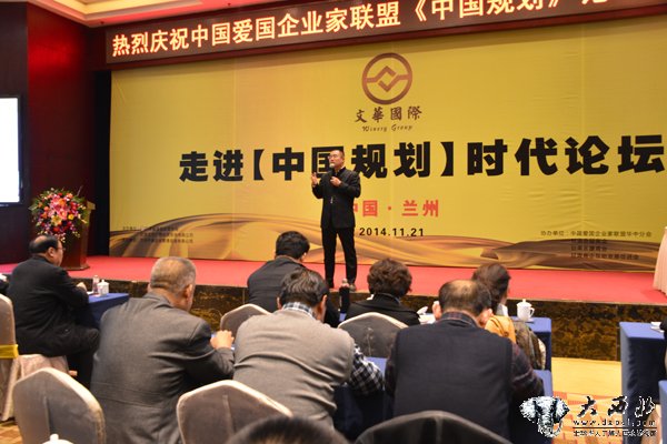 2014年11月21日下午,甘肃连锁经营协会和甘肃文华广德投资咨询有限公司主办的走进《中国规划》时代论坛在兰州组工大厦隆重开讲。为帮助更多大西北的民营企业家能够插上资本的翅膀,成为最优秀的企业家,《中国规划》第一人刘文华院长作了3个小时的专题演讲。甘肃省工商联和兰州市工商联领导出席论坛。来自甘肃省的企业家500多人到会听取刘文华院长演讲。 甘肃连锁经营协会会长张芳萍主持论坛。