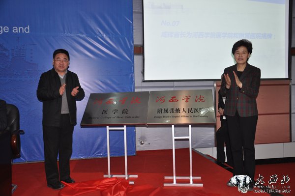 市委副书记、市长黄泽元在致辞中表示,“两校一院”合并后,张掖市委、市政府将一如既往地支持河西学院的发展,在把河西学院的建设发展纳入全市总体发展格局的同时,把河西学院作为张掖经济社会发展的独特优势,进一步加大支持力度,努力把市政府的各项承诺和政策执行好。希望河西学院积极发挥整合后的学科优势,尽快将医学专业升格为本科,通过河西学院原有农学、化学、生物学的融合,产生更多适应地方经济发展和地方经济建设的实用学科。同时,希望能够借助复旦大学、兰州大学等高校的支持,尽快实现硕士学位授予点零的突破,整体提升河西学院办学层次,提升办学水平,优化学科结构,提高人才培养质量,努力创办名副其实的河西大学。