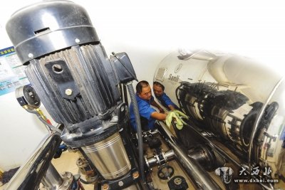 物业人员在维护二次供水设备资料照片