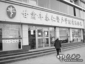 大西北网2月11日讯 昨日,兰州又有一家投资公司被爆因为资金出现问题悄然关门,西部商报记者采访发现,位于兰州市城关区的甘肃丰泰仁资产管理有限公司(以下简称“丰泰仁”公司)无法兑现投资客户的本息,公司大门紧锁,人去楼空,老板不见人影。目前,客户已经向警方报案,兰州市公安局城关分局经侦大队介入调查。