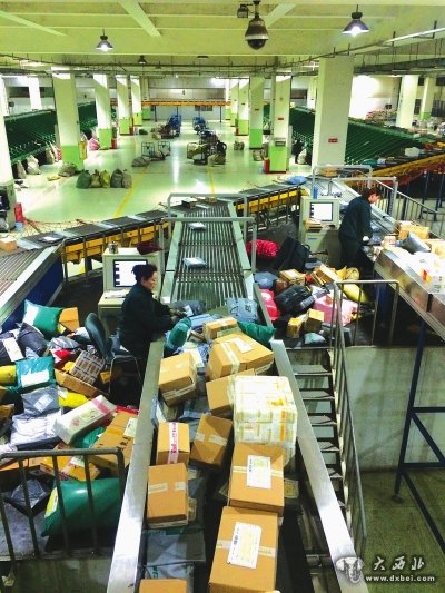 当晚9时许,记者来到位于雁滩的兰州邮件处理中心,一层3700平方米的汽转车间已堆放了大量邮件包裹,周围34个装卸窗口,大部分都在紧张卸货。邮件处理中心主任张立军告诉记者,2月10日开始,全省每天进出散件和总包邮件超过7万件,其中电商小包接近5万件,比平时翻了一番多。