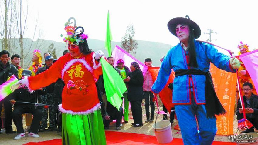 羊年大年初一早上,妈妈早早地安排了早饭。晚上七点多开始,村里的社火队就开始化妆穿衣,各就其位。打鼓的打鼓,掌灯的掌灯。炮声一响,群鼓齐鸣,锣鼓喧天。社火队浩浩荡荡地进入农户家中开始演出。画着虎头,写着“五谷丰登”“瑞雪丰年”“羊年大吉”等的各式虎头灯围成一圈,“腊花碗”灯里面点着蜡烛。“丢丑”的主角头戴插了鸡毛的破草帽、反穿着羊毛大衣,手里打着快板,唱着“大开开呀,牡丹花呀,真是得好呀,嗨……”;化了美美的妆的年轻少女们摆动着手里的纱巾,扭着腰肢,甩着长长的辫子,在二胡和板胡的伴奏下,踏着十字舞步“载舞”;年轻的小伙子两人合作扮成一只大狮子,精彩地表演“梅花桩”“跳桩”……