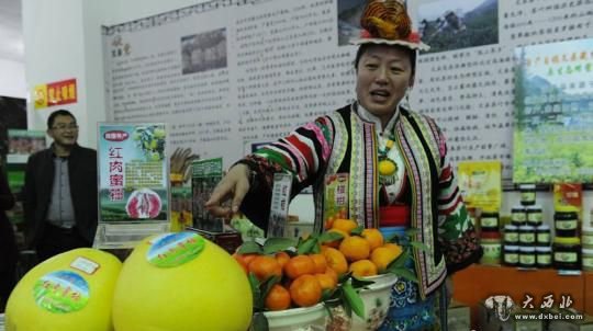 图为白马人在文县电商展厅卖特产。 杨艳敏 摄