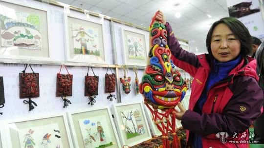 图为游客在文县电商展厅观摩白马人民俗文化旅游产品。 杨艳敏 摄
