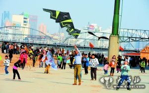 3月8日,天空晴朗,市民纷纷来到户外放风筝享受春日阳光。