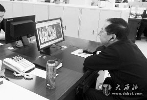 3月11日上午10时50分许,记者在定西市政府政务大厅二楼的一个农业服务窗口,却看见了令人惊讶的一幕。和其他各窗口的工作人员不同的是,一个戴眼镜的中年男子,端坐在电脑前戴着耳机,目不转睛地盯着电脑屏幕。他在看什么?记者发现这个男子正在“认真”观看一部战争类的电视剧。其专注程度更让记者吃惊,记者在窗口外站了近1分钟,他竟然没有查觉。经他人紧急提醒,男子回头看到记者在拍照后,赶紧摘下两个耳机,然后慌里慌张地关掉电脑屏幕,并说道:“我错了,我不应该……”随后记者了解到,这名上网看战争剧的男子是定西市农业部门派驻市政府政务大厅的工作人员。