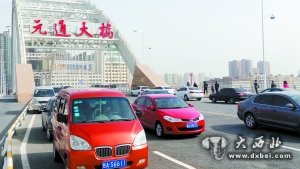 元通大桥北引桥停满车辆。本报记者 房毅 摄