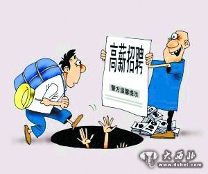 大西北网3月19日讯 春节过后,随着外来务工人员返城高峰的到来,应聘、求职人员陆续增多,一些不法分子也开始打着“招工”的幌子骗取钱财。根据往年经验,兰州警方总结发布了8大招聘骗局,提醒找工作者一定要小心陷阱。