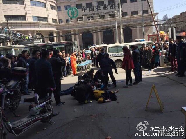 大西北网3月26日讯 3月25日下午1时20分许,兰州市金昌北路新广武通讯市场大楼上,一名男子从28层高楼上坠落,砸伤了一名过路的女子。坠楼男子当场死亡,过路女子被砸成重伤。目前,受伤女子正在三爱堂医院进行抢救。
