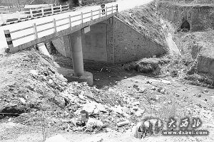 昨日上午11时许,记者来到通渭县马营镇,当地村民甘某告诉记者,镇中心周边多条小河都是牛谷河支流。经过该镇油坊村油坊大桥的一条河流就是牛谷河的一条支流,记者看到,这条河已经被各种建筑垃圾所覆盖,该主桥的半个桥墩被垃圾掩埋,河沟的护坡也被垃圾挤占,只留下不到十米的河沟。河水中漂浮着纸盒子、塑料袋和建筑木材框子。岸边是几家砖瓦厂,碎石和砖块被倾倒在河坡上。