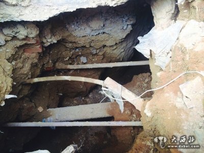 据另外一住户介绍,“这个坑是水管爆裂冲刷造成的,现在地下是空的,人都可以进去,前段时间有人专门下去看了,现在主要是靠上面的水泥固定路面,我们附近的5户小院里的房屋,都出现了不同程度的裂缝,要是一下雨,我们这里又刚好是下坡路,水会灌到坑里,特别危险。”