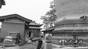 大西北网4月24日讯  昨日,记者走访兰州市白塔山公园时看到,几位工人正在白塔寺的白塔底座旁施工,据介绍,塔院的基础设施维修进入尾声,将于今年五一前完工。于去年实施的白塔塔身已完成修缮,纠偏倾斜度246毫米。