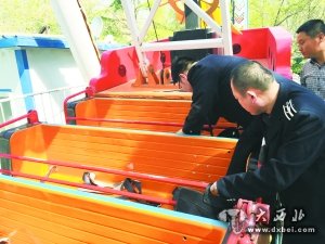 质监部门工作人员现场检查游乐设施。本报记者 刘有中 摄