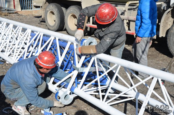 甘肃铁塔武威黄羊镇高速路口基站铁塔安装现场(2014年12月31日)