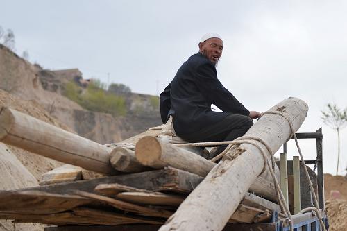 4月20日,领到政府危房改造补助的村民拉着木材准备盖新房。