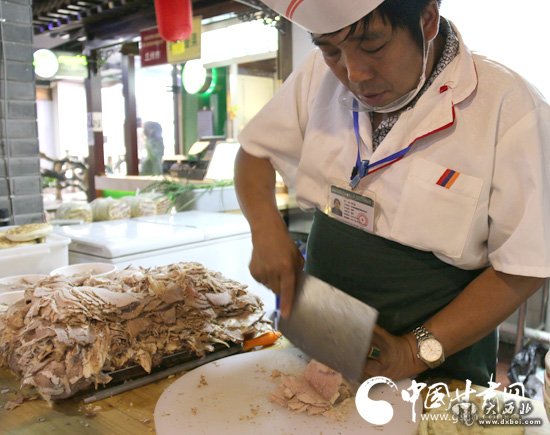 来兰州一定要吃一碗牛肉面才不虚此行,看,师傅已经在给您切肉片儿了。