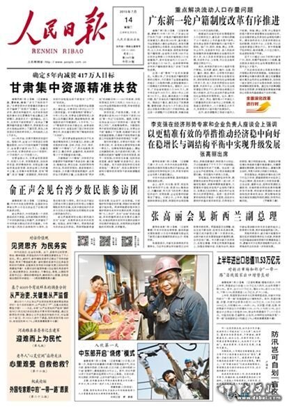 《 人民日报 》( 2015年07月14日 01 版)