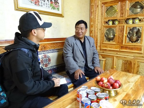 阳光明媚、清风拂面,我们走进牧民尕海加的家,几间整齐的砖瓦房,院子收拾的格外干净。尕海加的老伴热情的将我们迎进门,屋内整洁明亮,柏木家具散发出淡淡的清香,桌子上摆满了饮料、水果等食品。尕海加是个53岁的藏族阿爸,虽然上的学不多,却说得比较流利的普通话。由于强烈的紫外线照射,古铜色的面容显得格外苍老,爱笑,很健谈、待人客气。他是一名老党员,也是退下来好几年的老支书。这位在贡巴村生活的牧民,用他辛勤的双手耕耘,见证了碌曲县郎木寺镇贡巴村牧区翻天覆地的变化。