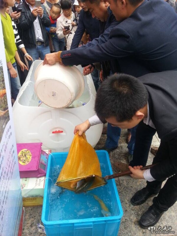 昨日,当记者走进西和县展位现场时,这里好不热闹。“新鲜的鳟鱼,快来看!欢迎选购。”随着一声声的叫卖,西和县展位内出售的虹鳟鱼、金鳟鱼引来围观者无数。“给我称上一条。”“我也要一条。”“还有我,也来一条……”不多时,一条条在鱼池里欢快游来游去的鳟鱼被装在袋子里售出。一边是抢着买鱼的路人,一边是忙着卖鱼的鱼农。而在鱼农中间,更让人注目的还有西和县书记和县长。原来,为了更好的打开虹鳟鱼、金鳟鱼的销售渠道,西和县委书记曹勇与西和县县长赵爱平一起上场,向过往人士讲述虹鳟鱼、金鳟鱼的养殖及营养价值等等。