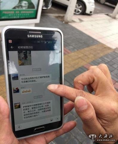 随时随地拍照发微信的工作模式,也为城管执法人员更好地维护自身利益提供了便利。“以前我们的工作人员一跟小摊贩起争执,他们有的就躺在地上说城管打人了,你也没办法,现在我们的工作都是直播的形式,他们也不敢随便胡来了。”