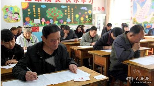 图为家政服务员理论考试现场,大叔有很多。郭惠民摄