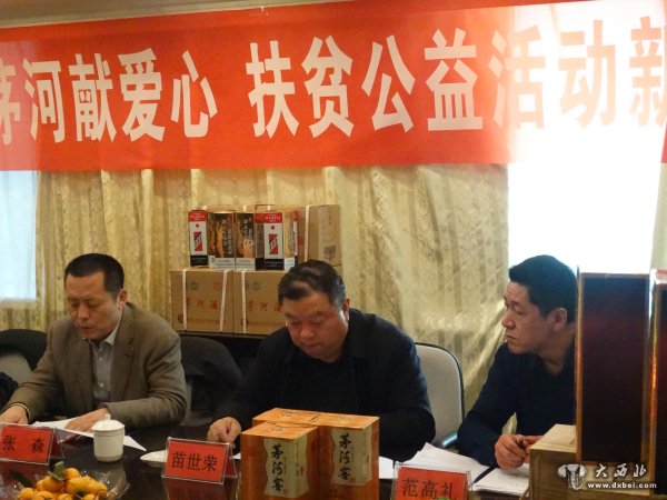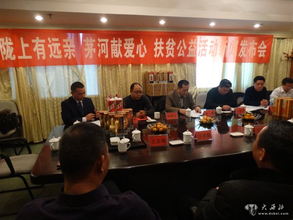 浓浓的扶贫情、暖暖的爱心意,助力扶贫工作,推进脱贫进程。2016年12月9日,由甘肃省社会扶贫爱心捐助基金会、贵州省仁怀市茅河酒业有限公司、兰州茅河酒业有限公司和中国邮政集团公司兰州市电商分销局共同发起的“陇上有远亲,茅河献爱心”扶贫公益活动召开新闻发布会,旨在充分利用我省扶贫爱心平台和优质酒类资源及物流优势,向社会大众免费赠送质优物美的酱香型白酒,在让利于大众百姓消费的同时,提取专门基金用于我省贫困地区的脱贫和发展。