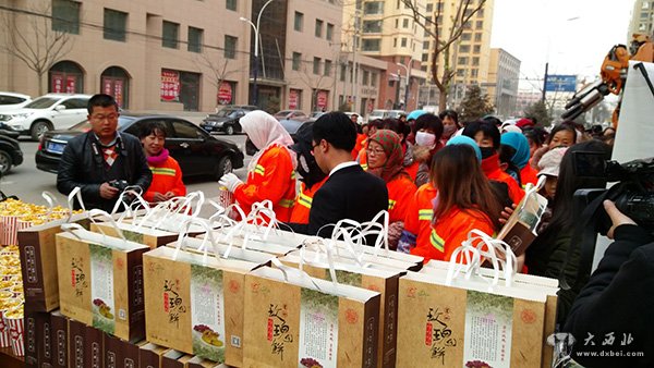 当日上午9时,永登新视界百花数字影城所在的永登百花文化大厦前,来自永登县的环卫工人已经排好了整齐的队伍,接受爱心企业联合举行的送温暖行动。来自永登百花影城及相关企业的负责人、员工,一边为环卫工人发放爆米花、玫瑰饼,一边现场制作着热饮,把一份份祝福和温暖送到环卫工人的手中。现场一句句互致的“谢谢”,既让人们看到爱心企业对环卫工人的感恩,也让人感觉到环卫工人对爱心企业对自己工作认可的欣慰。寒冬的永登街头,呈现出一幅别样的温暖画面。