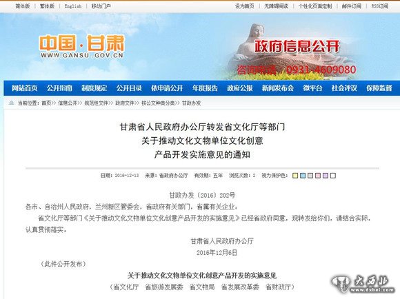 甘肃省发布《关于推动文化文物单位文化创意产品开发的实施意见》