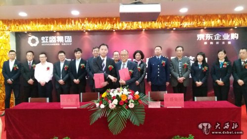 兰州市商务局副局长刘志强、西固区商务局等有关部门负责人出席签约仪式和发布会。兰州虹盛商贸(集团)有限公司董事长蔡根泉与京东集团大客户高级总监胡迪进行了合作签约。