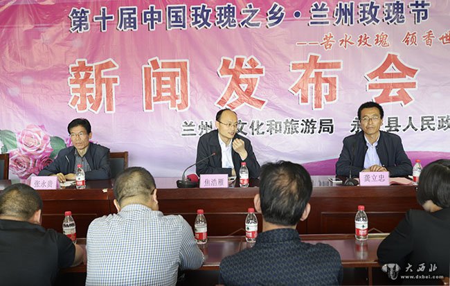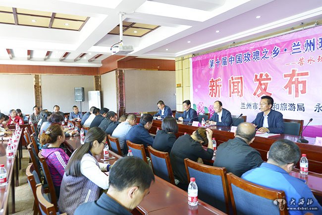 大西北网讯 5月12日,第十届中国玫瑰之乡·兰州玫瑰节新闻发布会在永登县玫瑰旅游服务中心召开。市文旅局、县政府、县文旅局、苦水镇及有关单位部门、部分玫瑰企业和县上旅行社负责人参加了新闻发布会。中央驻甘及本地十多家媒体应邀参加了新闻发布。市文化和旅游局、县政府有关领导回答了记者的提问。