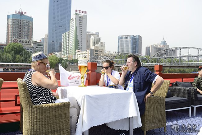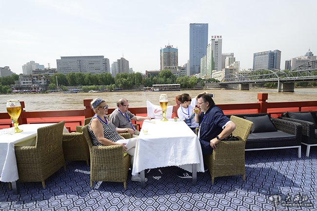 几名德国友人坐在游艇上喝着慕尼黑啤酒和兰州三炮台,欣赏着两岸风光,从他们的前辈建造的中山桥下经过