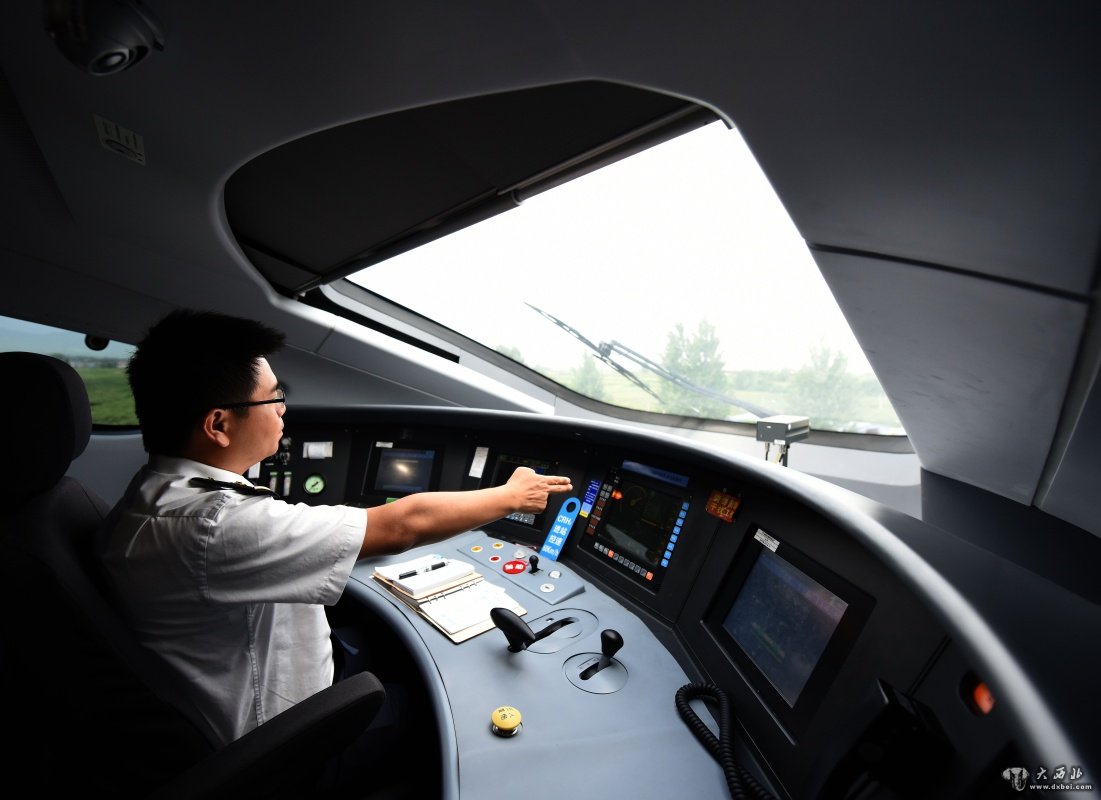 7月9日,列车工作人员在驾驶西安北开往兰州西方向的D2685次列车。