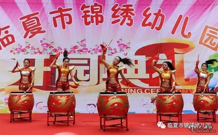 临夏市锦绣幼儿园开园活动中欢快的锣鼓敲起来!