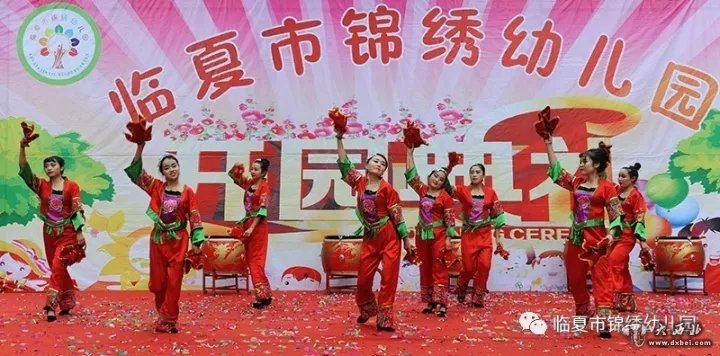 临夏市锦绣幼儿园的教师们表演的舞蹈《开门红》