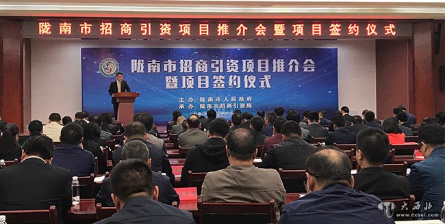 陇南是甘肃省的“南大门”,拥有甘肃最多的县区和排名前列的人口,是“一带一路”甘肃黄金段南部地区市场最为活跃、商机无限的市州之一。特别是陇南经济开发区位于富饶的徽成盆地,基础设施日趋完善,商业发达,交通便利,是陇南今后最为活跃的经济中心和产城融合新区。当前,随着国家“一带一路”、长江经济带和西部大开发等重大战略的实施,以及国家、甘肃省对陇南脱贫攻坚、基础设施建设、产业培育等方面的大力支持,陇南面临的发展机遇前所未有。同时,陇南将不断激发内生动力,深化改革开放,积极营造亲商、富商、安商的社会环境,着力打造“甘肃向南开放的桥头堡”,为各位投资商在陇南投资兴业、共建共赢创造更加便利的条件。陇南市委副书记、代市长崔景瑜在致辞中说,举办此次项目推介会,旨在推介陇南的资源、项目和环境,进一步深化交流合作与招商引资。陇南将以更加优惠的政策,更加便利的营商环境,不断拓展在道路交通、城市轻轨、供热供气供水、城市污水垃圾处理和产业开发等领域的务实合作,着力构建全方位开放开发新格局。