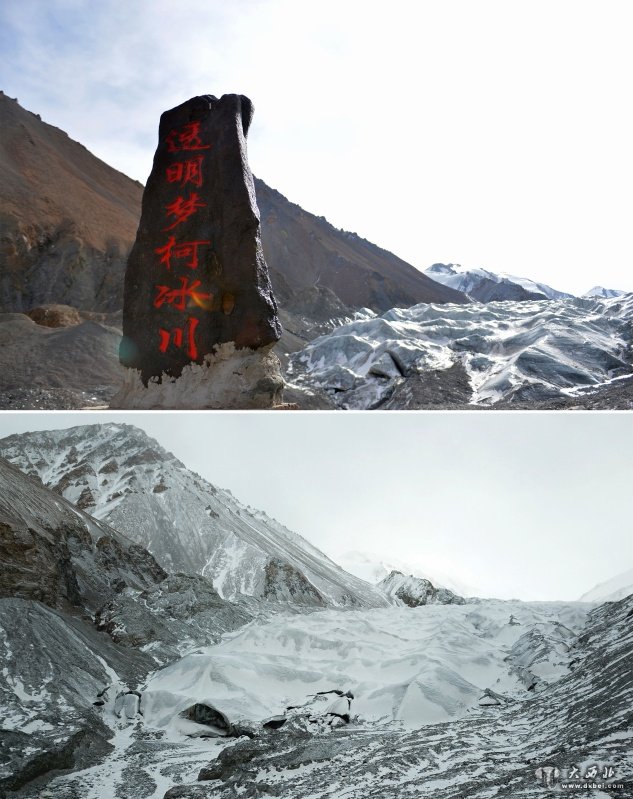 中科院1958年以来的监测数据表明,透明梦柯冰川末端在近60年中已退缩达400多米,储量减少1.5亿立方米。近年来冰川局部地区的雪线以年均6米的速度上升。 新华社记者陈斌摄
