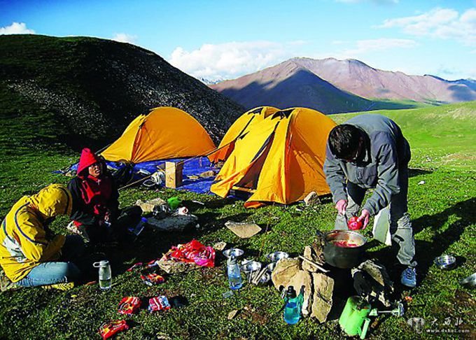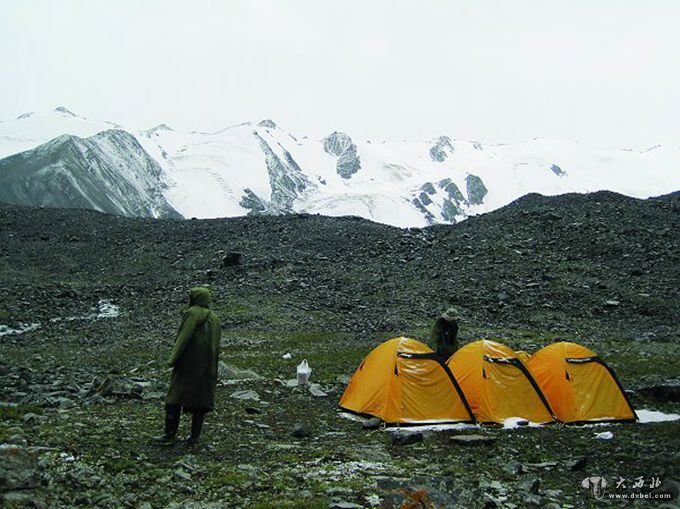 雪山脚下搭帐篷住宿
