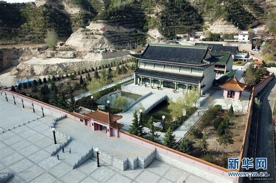 这是在兰州黄河北岸拍摄的甘肃省图书馆文溯阁《四库全书》藏书馆全景(4月22日无人机拍摄)。