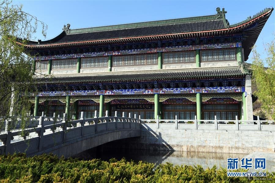 这是在兰州黄河北岸拍摄的甘肃省图书馆文溯阁《四库全书》藏书馆近景(4月22日摄)。