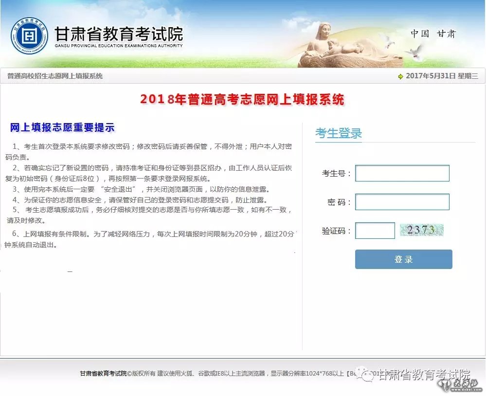 2018年甘肃省高考填报志愿注意事项及操作流程