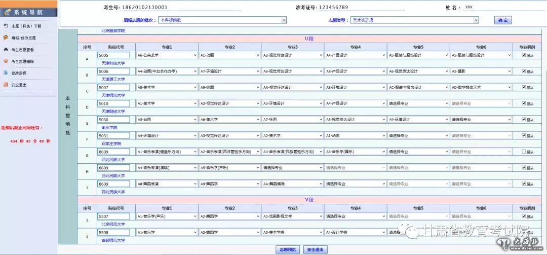 待了解导航内容及功能后,考生可根据预先填好的“志愿样表”按照系统提示和要求逐批进行填报。填报参考界面如下: