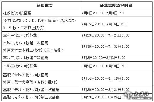 批次:本科提前批(A段、B段、C段、D段、E段、F段、G段);本科一批(H段、I段、J段);本科二批(K段、L段);高职(专科)批(P段、Q段);体育、艺术类本科一批(T段、U段、V段);体育、艺术类本科二批(W段)。