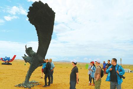 8月22日,2018首届中国·民勤沙漠雕塑国际创作营在苏武沙漠大景区开幕。