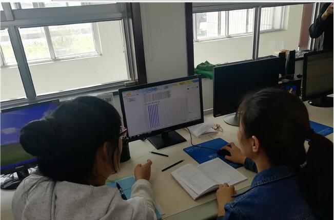 苏子航(右)和成静打开百叶箱巡视仪器是否正常。