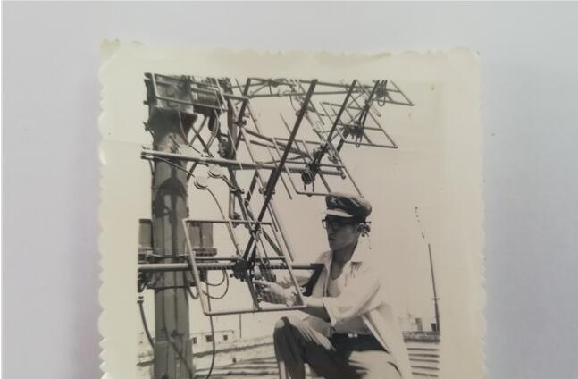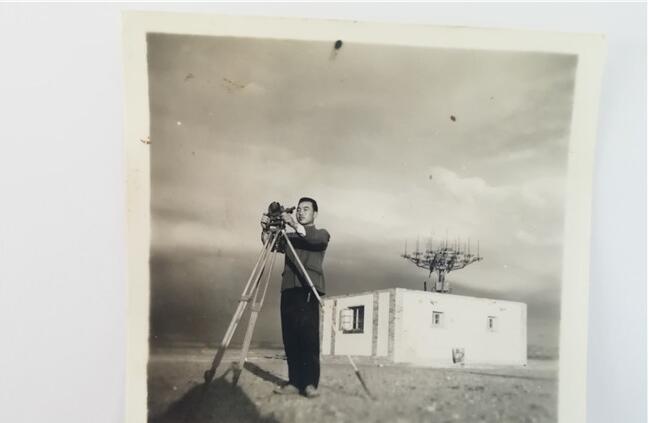 上世纪70年代初,吴建军正在马鬃山气象站检修雷达。(翻拍吴建军提供的老照片)