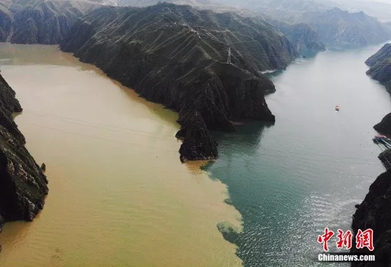 洮河水在与黄河交汇处刘家峡水库清波“相遇”时,形成“泾渭分明”的奇观。杨艳敏 摄