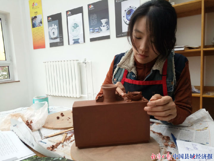 来自韩国的专业陶艺师正在作品创作中记者牛新建摄