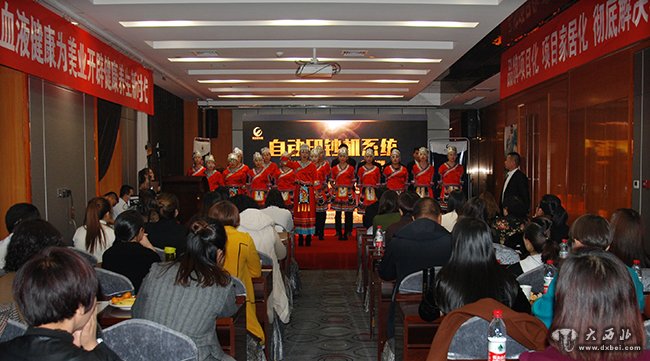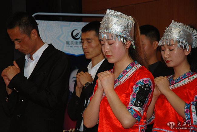 在发布会现场,“苗康宝”系列养生产品代理商金海丽人营销团队,以苗族特色的演绎,向与会人员展现了金海丽人的企业文化,与“苗康宝”系列养生产品“关爱生命,赋予健康”的大爱理念。