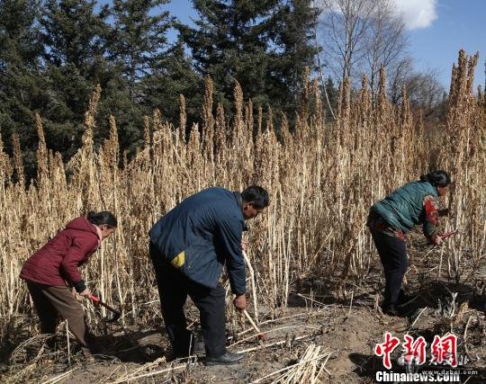 图为深秋时节,甘南藏区的民众收割藜麦。 史静静 摄